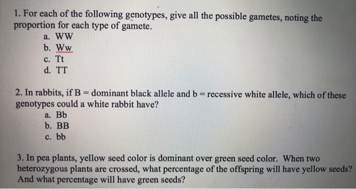 Solved: Following Genotypes, Give All The Possible Gametes... | Chegg.com